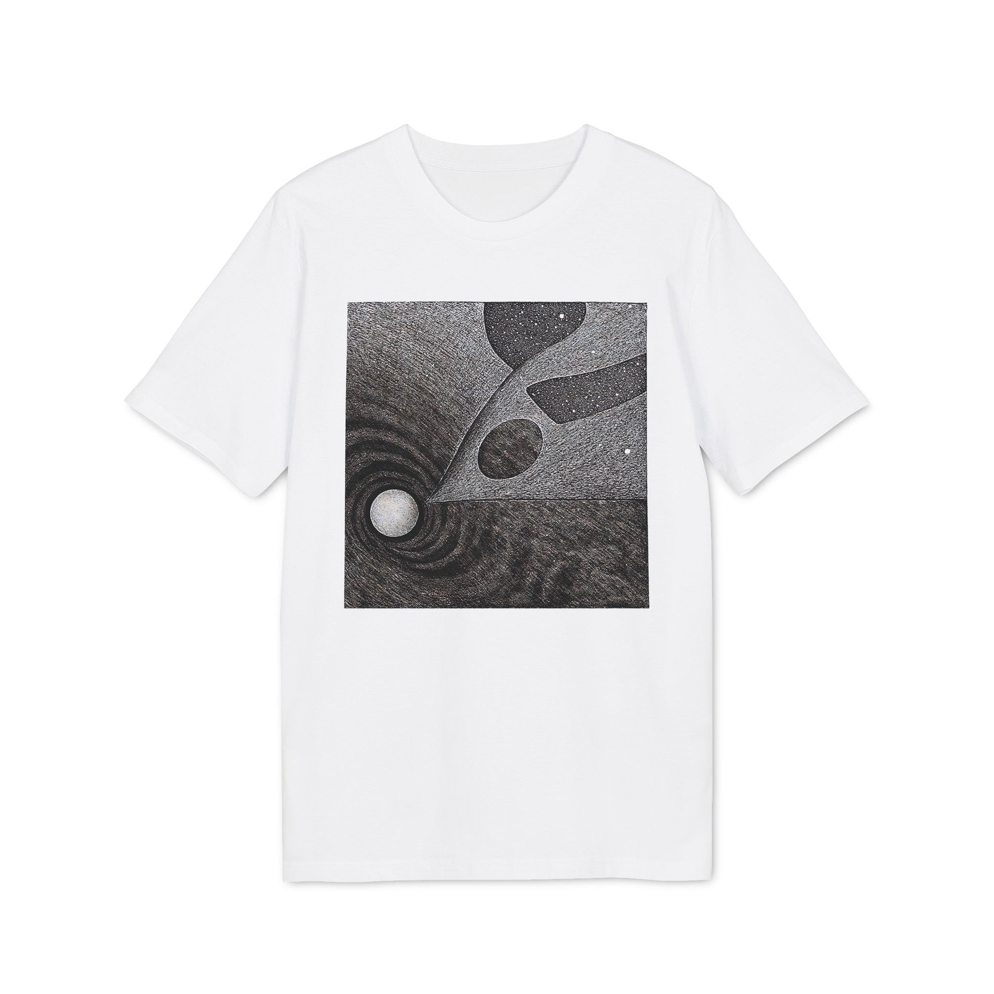 A dark and occult-inspired T-shirt featuring hand-drawn abstract art with high-class design elements. Perfect for those interested in astrology, sacred geometry, and spiritual art. This eco-friendly tee is made of 100% organic cotton, providing comfort and style with a rebellious edge. Ideal for adults who love unique and alternative fashion, suitable for occasions like Halloween and spiritual gatherings.